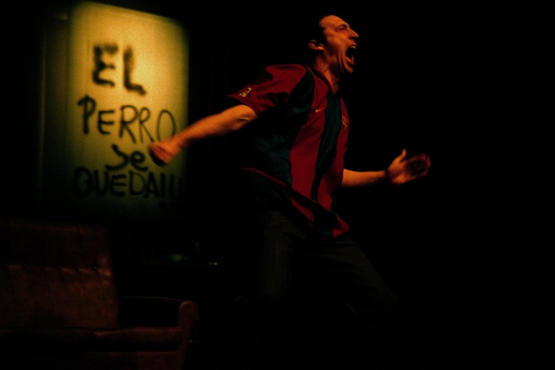 (Durante más de 10 minutos, Santiago improvisa sobre la actualidad futbolística. Se sabe de memoria las alineaciones del Barça desde el año de su fundación. Compara tácticas. Dice que el fútbol es una cosa animal. Instintiva. Si piensas, pierdes la pelota.)