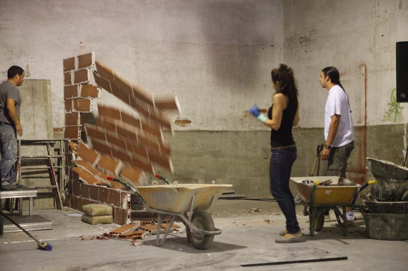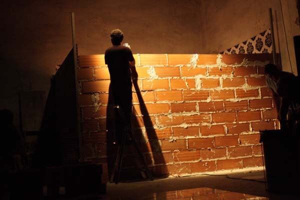construir en escena (en directo y con ladrillos) un cubo sin techo. un habitáculo. tapiar el teatro dentro de cuatro paredes sin salida. es algo obvio, lo sé, pero me gusta mucho.